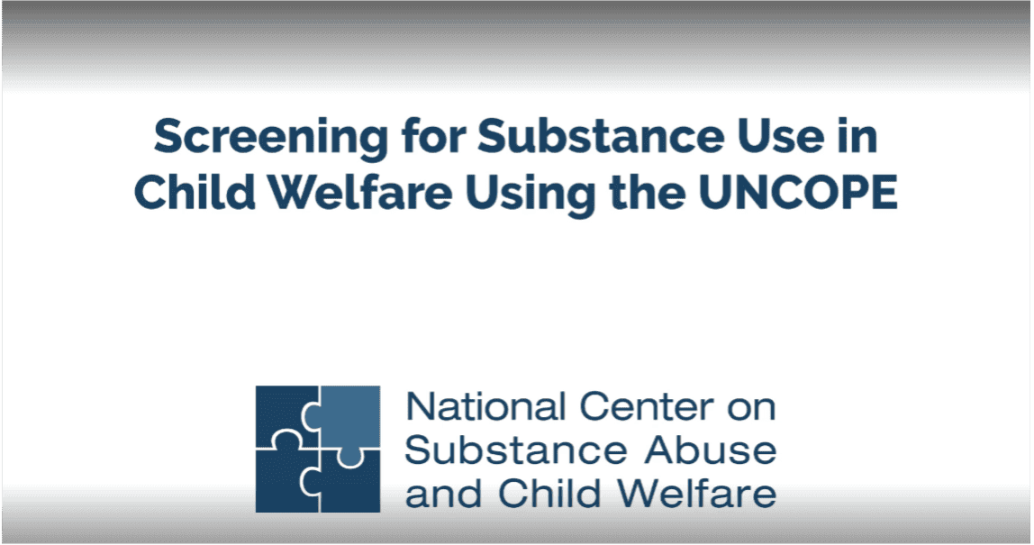 This pre-recorded video reviews the UNCOPE and through a case vignette demonstrates how to incorporate this screening in child welfare…